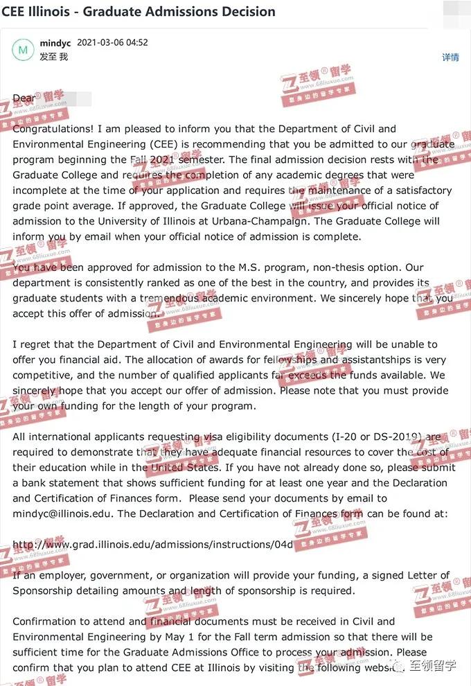 录取结果:UIUC,M.S. in Civil Engineering伊利诺伊香槟分校土木工程硕士录取