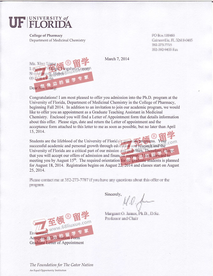 录取结果:弗罗里达大学化学专业 PHD