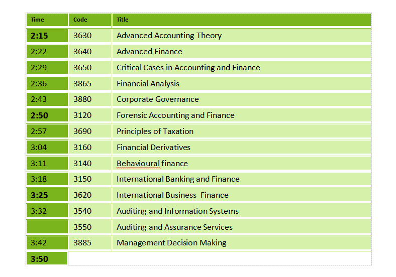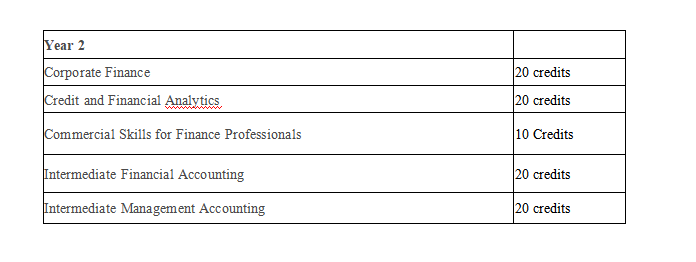 必修课程都是在Year 2 的阶段在进阶一个层面,基本上完成ACCA 免试第二阶段的课程,例如Auditing。也有一些比较有趣的新开课程比如Forensic Accounting等等。其他基本上都是必修了。