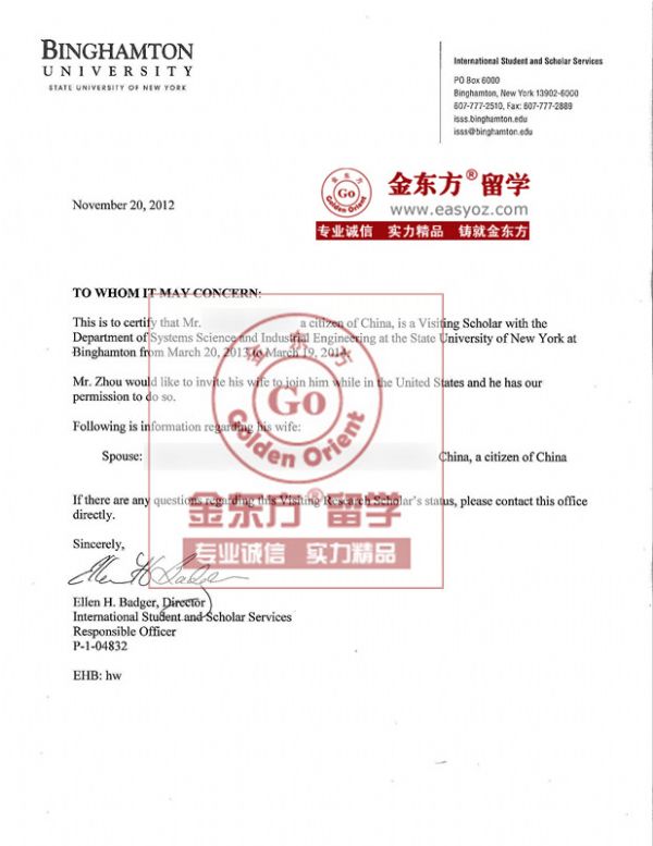 在资料发出不到2周的时间内,陆续接到美国的罗格斯大学、奥本大学、普渡大学、纽约州立宾汉姆顿大学等导师的青睐。综合考虑后,周老师选择了研究领域更加匹配的美国纽约州立大学宾汉姆顿大学,更为重要的是,这个非常nice的美国老头还特意为周老师的助理、博士在读生发出邀请,同时邀请其夫人一同前往,并在研究设备、实验室、乃至医疗保险、住房等细节上给予观照。