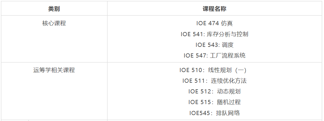 运筹学项目学生需要修得30个学分以获得毕业资格。不同track的课程设置有差异。安娜堡分校的不同track的课程结构完全不同,内容也有很大差异,课程灵活度较小,因此,不同方向的毕业发展前景也会很不同,这更需要同学们慎重选择课程方向。