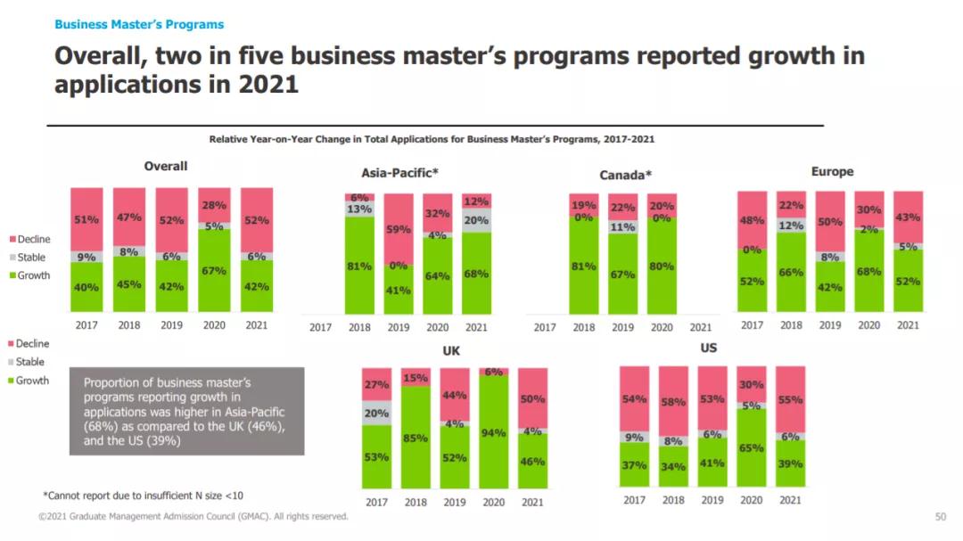 商科硕士项目申请的增长水平回到疫情前