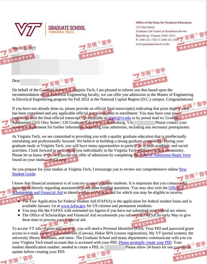 录取结果:Virginia Tech,Master of Engineering in Electrical Engineering弗吉尼亚理工大学电气工程硕士录取