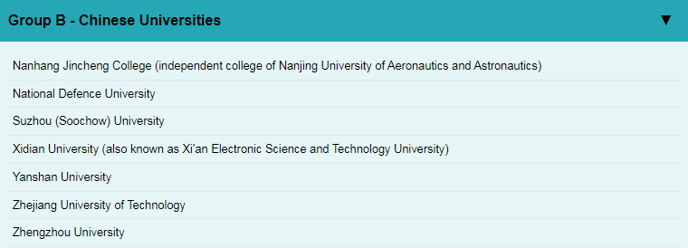UCL的中国大学名单中,将中国院校划分为了Group A、Group B、Group C三组:
