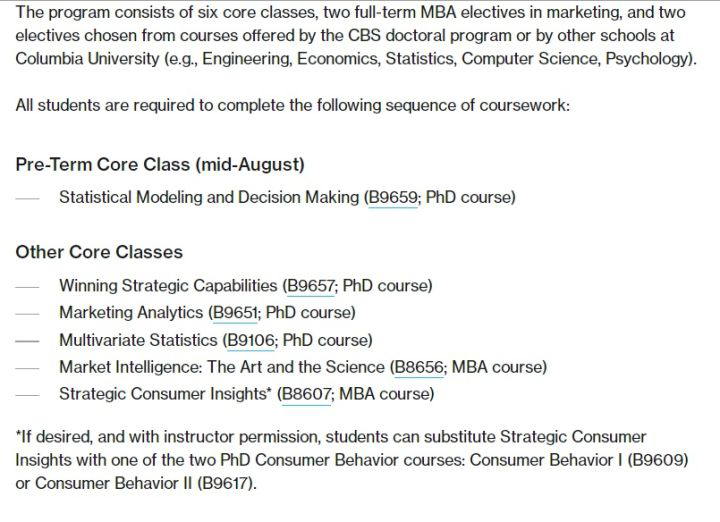 哥大的MKT硕士很偏研究,侧重对市场分析内容的学习及应用,这从其课程设置中就能看出。硕士核心课中,Mathematical Methods,Multivariate Statistics等均为PhD- level 课程。STEM-designated项目,学生毕业后可以获得36个月的OPT时间,方便毕业生留美实习或工作。