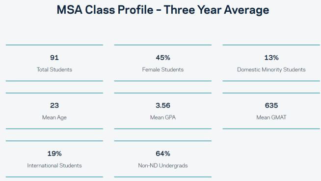 从这个MSA项目过去三年的录取平均数据来看,项目招生91人,国际生占19%,录取者平均GPA 3.56, 平均GMAT 635。