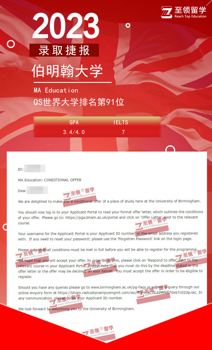 录取结果:University of Birmingham,MA Education 伯明翰大学教育学硕士录取