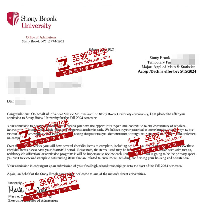 Y同学个性较强,有自己的想法,期望申请到美国前50的院校,选校时比较看重学校的综合排名。针对学生需求,我们推荐了较匹配的八所作为申请目标。最先获得纽约州立大学石溪分校OFFER。