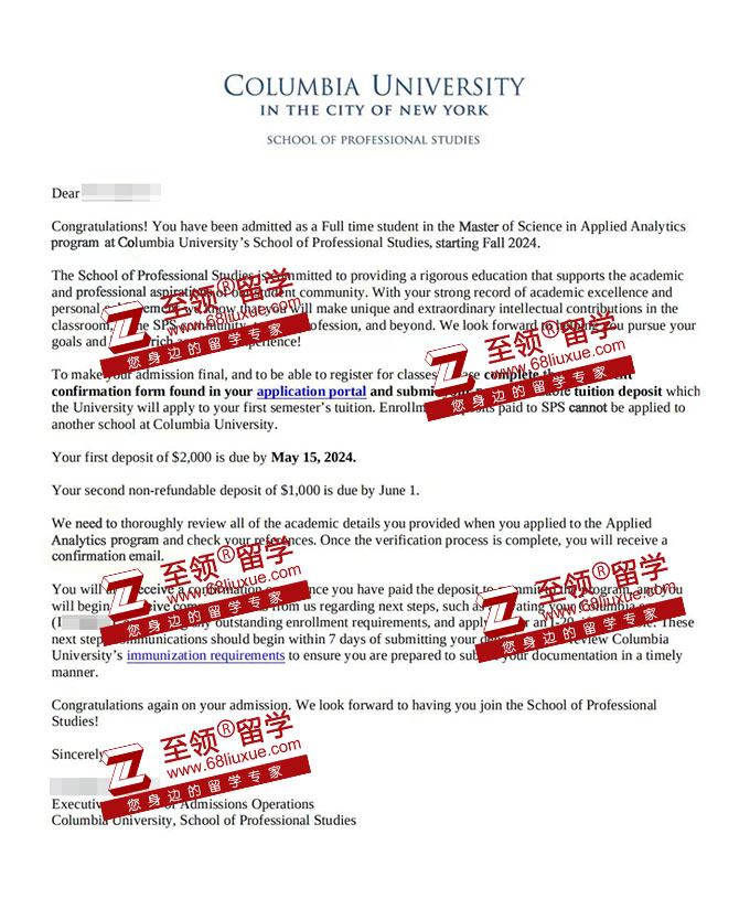 录取结果:Columbia University,MS in Applied Analytics哥伦比亚大学应用分析硕士录取
