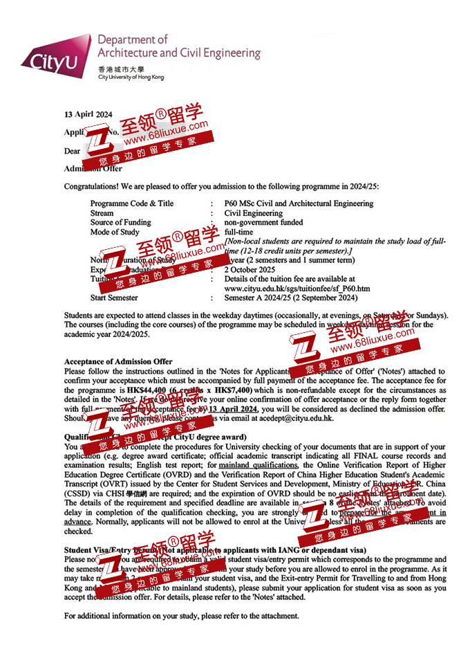 录取结果:City University of Hong Kong,MSc Civil and Architectural Engineering香港城市大学土木与建筑工程硕士录取
