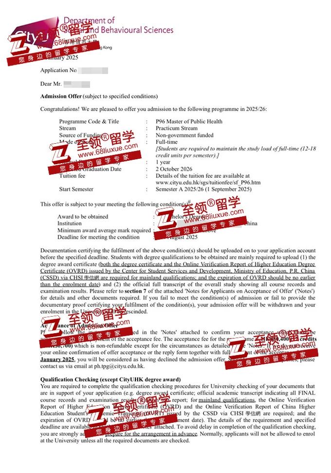 录取结果:香港中文大学MPH录取,香港城市大学MPH录取