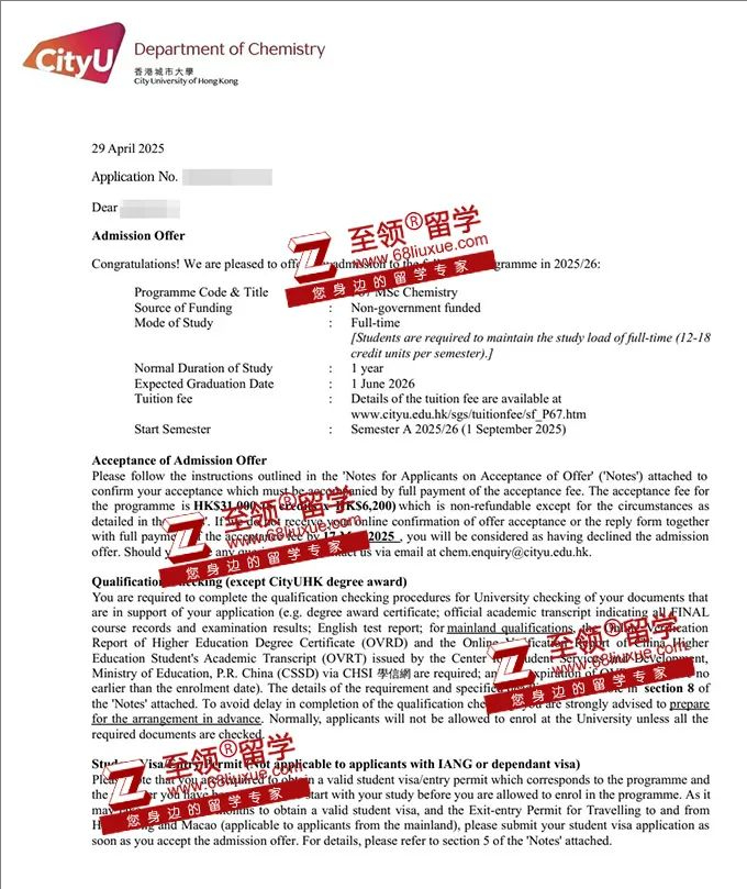 C同学国内双非大学本科,2段校内科研项目经历,1段化工企业实习,主要考虑香港和新加坡的大学,申请项目以化学硕士为主。C同学签约晚,在确认好要申请的学校后,老师们就快速开始准备申请资料。文书以“化工企业实习中解决催化剂效率问题”为切入点,串联学术理论与实际应用能力,针对城大偏好“学术实践结合”的特点,在文书中嵌入对香港化学产业发展的见解,体现职业规划与地区需求的关联。在至领申请团队与学生的配合下,C同学顺利拿到香港城市大学录取。