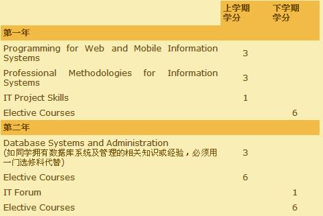 本课程分为两部分-必修科目 (共 11 学分) 及选修科目 (共 18 学分)。如果同学拥有数据库系统及管理的相关知识或经验,必须把必修科目“Database Systems and Administration”用其他选修科代替。