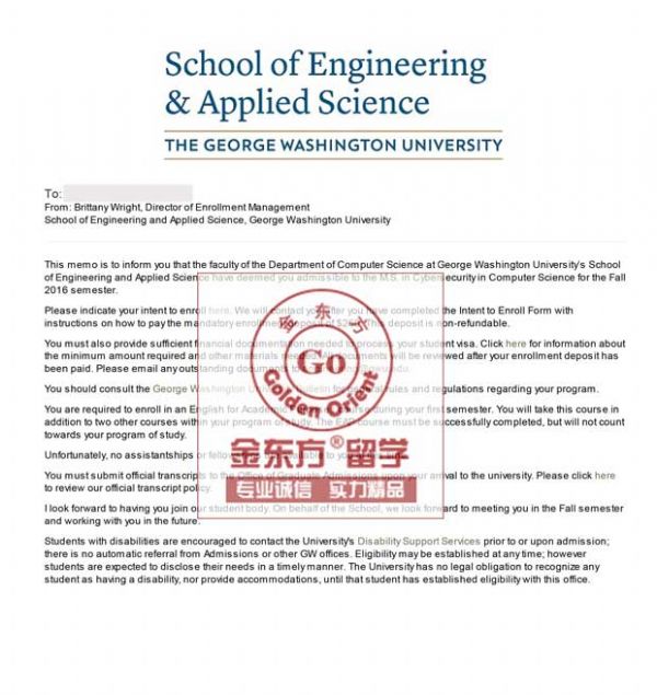 录取结果:乔治华盛顿大学,MS in Cybersecurity(信息安全硕士)
