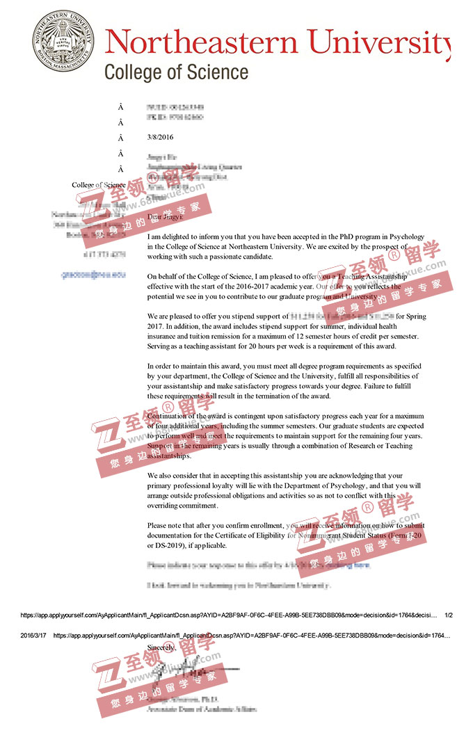 录取结果:Northeastern University(东北大学),PhD in Psychology 全奖录取( 免学费+$33,774/年补助)