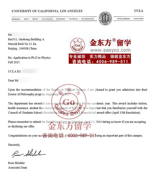 录取结果:UCLA Ph.D 物理全奖$65,334