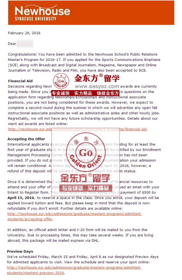 等待offer的过程是漫长的,突然的有一天老师打开邮件收到了Y同学加利福尼亚大学圣迭戈分校国际事务专业硕士的offer,这让同学和老师非常的激动,同学也一再的对金东方留学表示感谢,说我们是最专业最靠谱的机构。