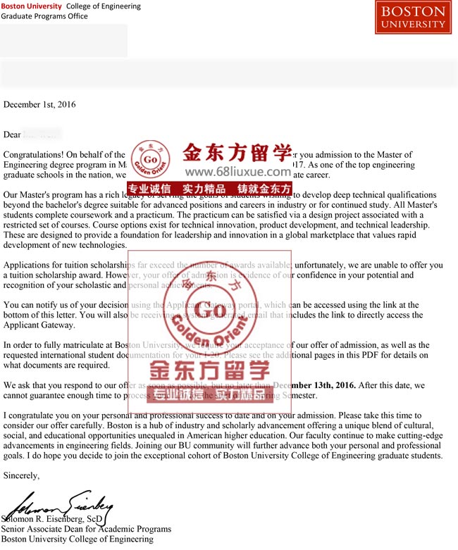 录取结果:Boston University,MEng in Manufacturing Engineering(制造工程专业)
