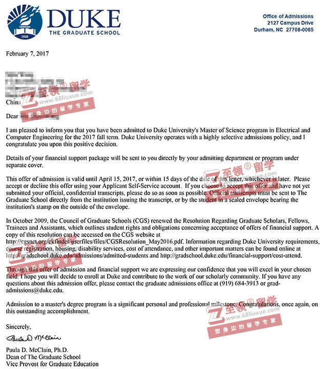 录取结果:Duke University (杜克大学),MS in Electrical and Computer Engineering (电气与计算机工程硕士)