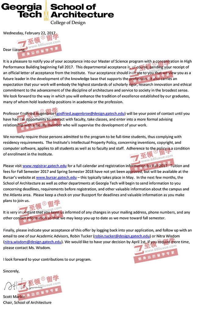 录取结果:佐治亚理工学院建筑工程硕士;东北大学可持续建筑系统硕士