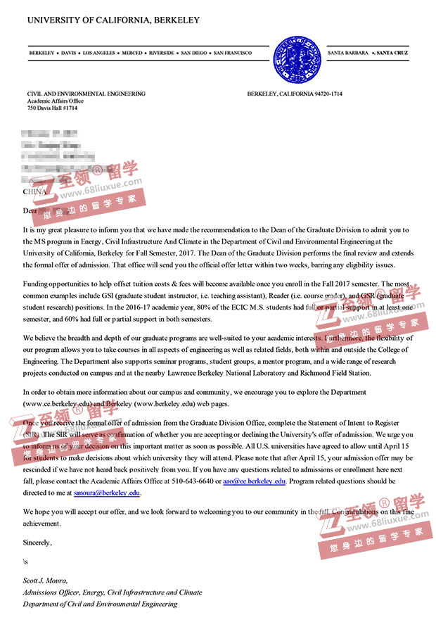 录取结果:加州大学伯克利分校,环境工程硕士
