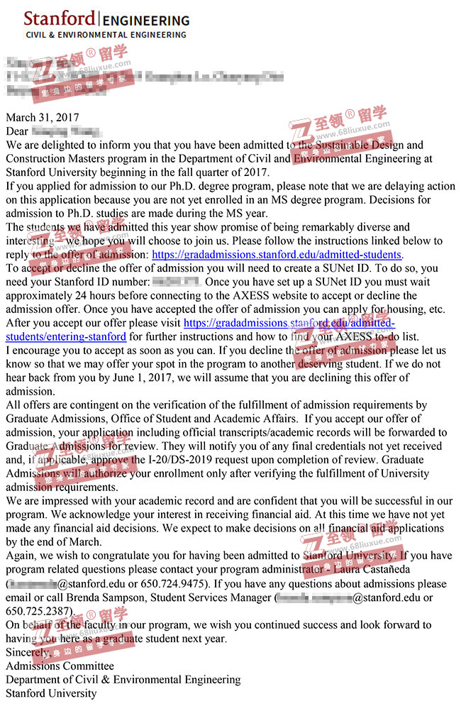 录取结果:Stanford University斯坦福大学,Master of Sustainable Design and Construction可持续设计与施工硕士