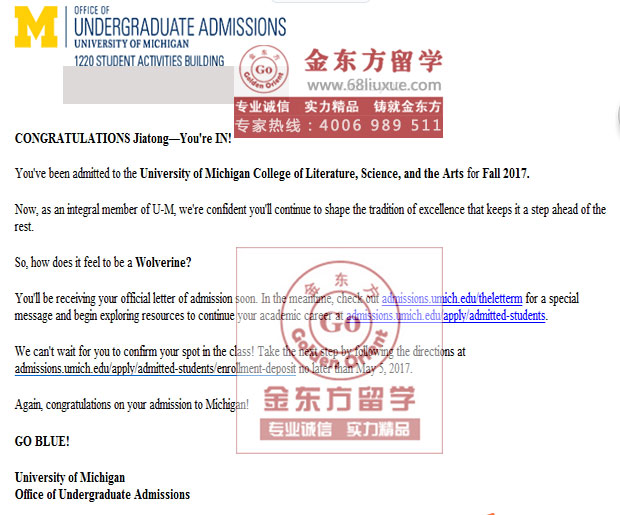 功夫不负有心人,最终L同学成功拿到美国密歇根大学安娜堡分校录取OFFER,所有老师都为她感到高兴,本次申请同样也达到了事半功倍的效果。