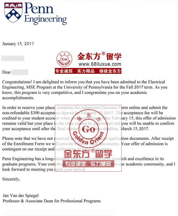 录取结果:University of Pennsylvania 宾夕法尼亚大学,MSE in Electrical