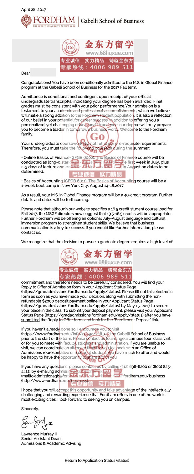 录取结果:Fordham University福特汉姆大学,MS in Global Finance全球金融硕士