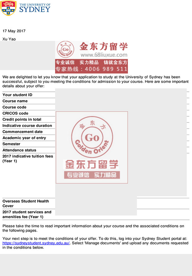 录取结果:University of Sydney悉尼大学,Master of Architecture con-offer建筑学硕士有条件录取