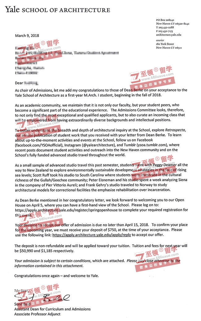 录取结果:Yale University耶鲁大学,M.Arch. I 建筑学硕士