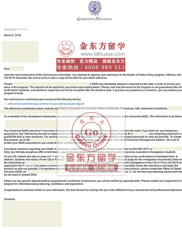 录取结果:Geogertown University 乔治城大学,Master of Public Policy 公共政策硕士