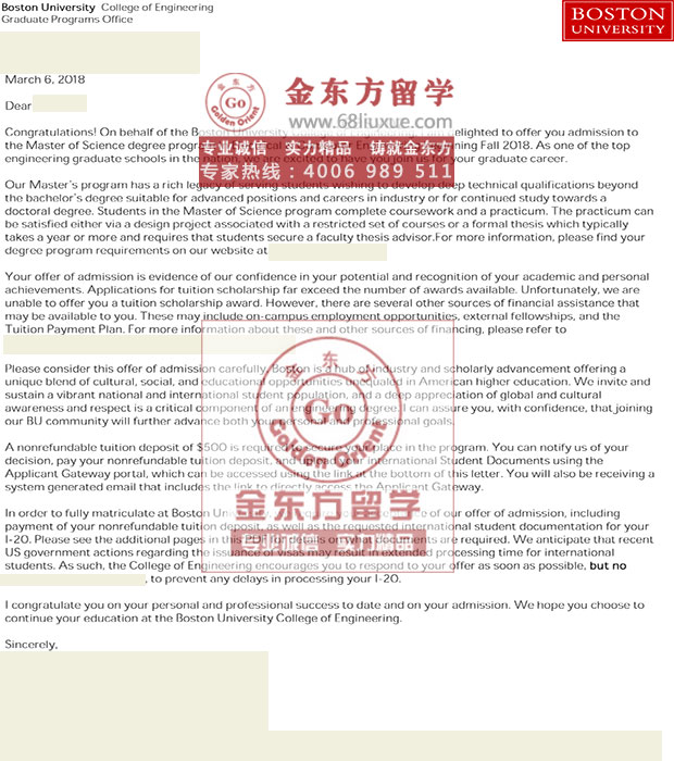 录取结果:Boston University波士顿大学,MS in Electrical Engineering 电子工程硕士