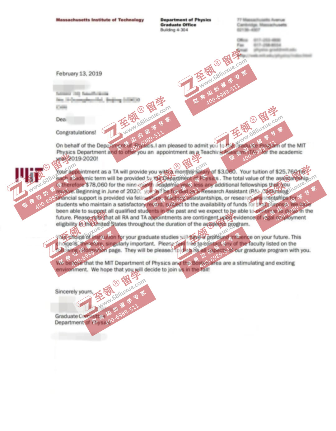 录取结果:MIT Ph.D in Physics 免学费+TA,总奖学金$78,060/年