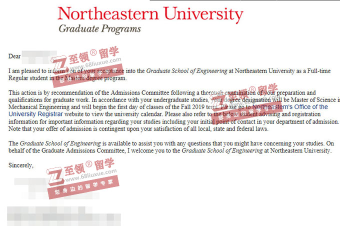 录取结果:Northeastern University,Master of Science in Materials Science美国东北大学材料科学硕士