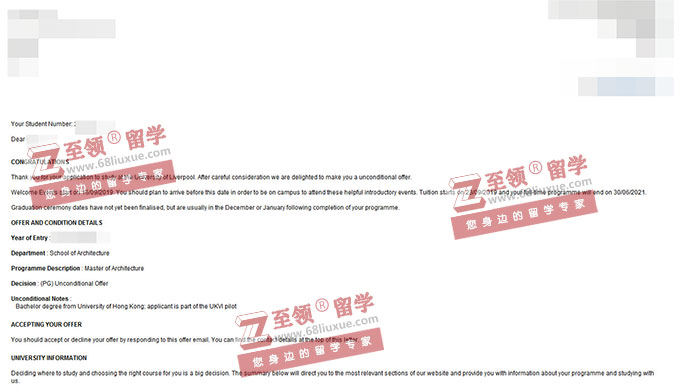 录取结果:University of Liverpool,Master of Architecture 利物浦大学建筑学硕士录取