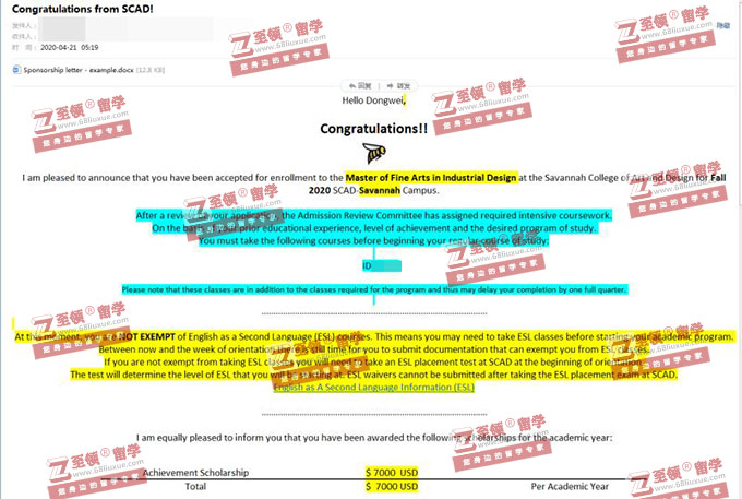 录取结果:Savannah College of Art and Design,Master of Fine Arts in Industrial Design萨凡纳艺术与设计学院工业设计硕士录取+奖学金$7,000