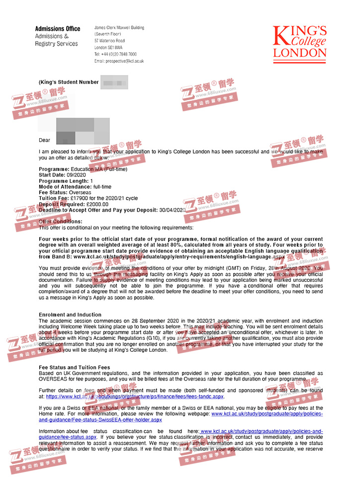 录取结果:King's College London,MA Education伦敦国王学院教育学硕士录取