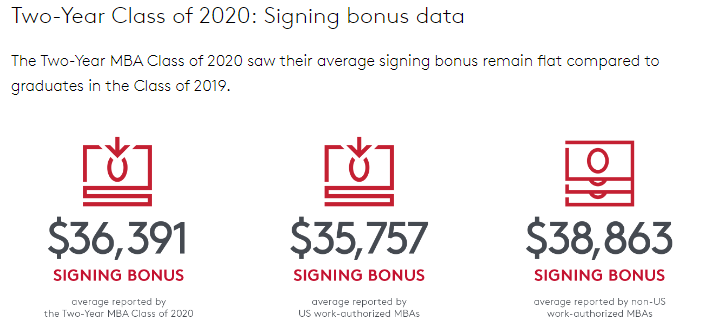 2020级MBA毕业生的平均总薪资为172,247美元,比去年的161,730美元增长了6.5%,与前两年相比增长了12.5%。