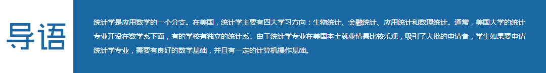 | 生物统计 | 该专业主要探讨如何进行生物学实验研究的设计、取样、分析、资料整理与推论的学科,是美国统计学专业最热门的领域。 该专业的毕业生就业前景广阔,可以进入大学从事教学和科研工作,也可以在生物科技公司和制药公司进行统计分析,还有相当数量的毕业生进入了医疗机构、证券分析和保险公司工作。 |