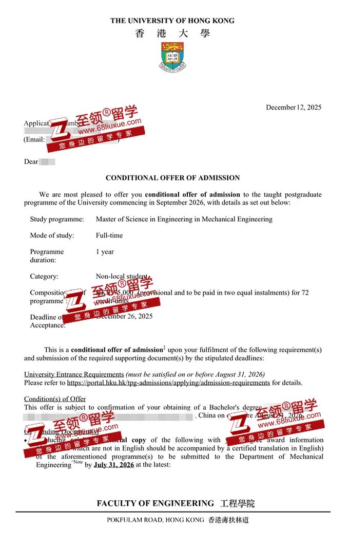 凭借精准的申请策略和突出的个人亮点,L同学最终成功斩获香港大学机械工程硕士录取。