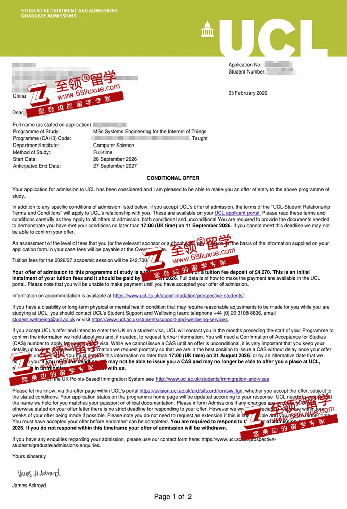 录取结果:UCL,MSC Systems Engineeringfor the Internet of Things 伦敦大学学院物联网硕士录取