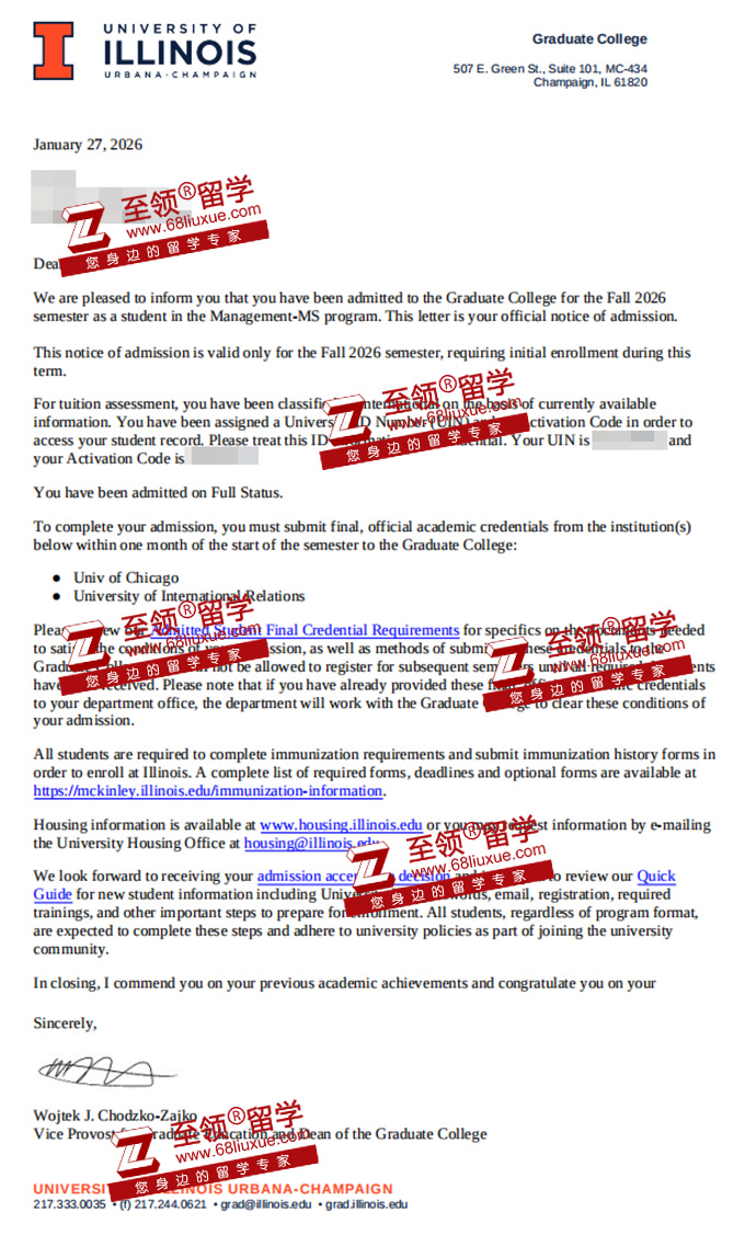 录取结果:伊利诺伊大学香槟分校管理学硕士录取+$5000奖学金