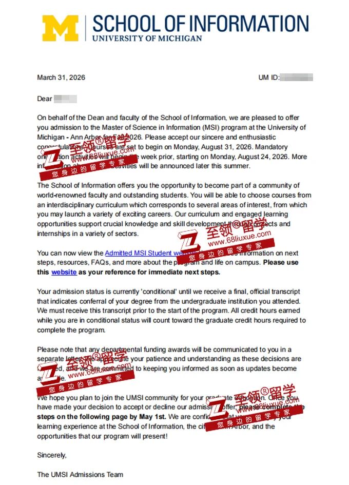 录取结果:密歇根大学安娜堡分校信息系统管理(Big Data Analytics)硕士录取