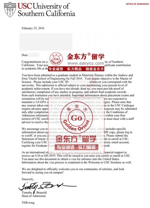 终于,A同学获得了南加州大学材料工程硕士的录取。