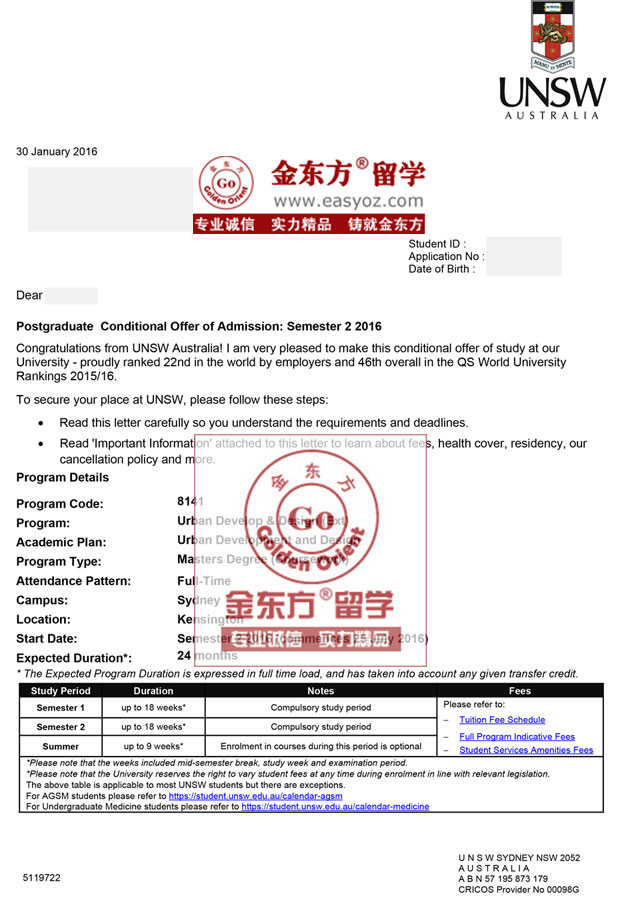 录取结果:UNSW新南威尔士大学城市发展与设计专业