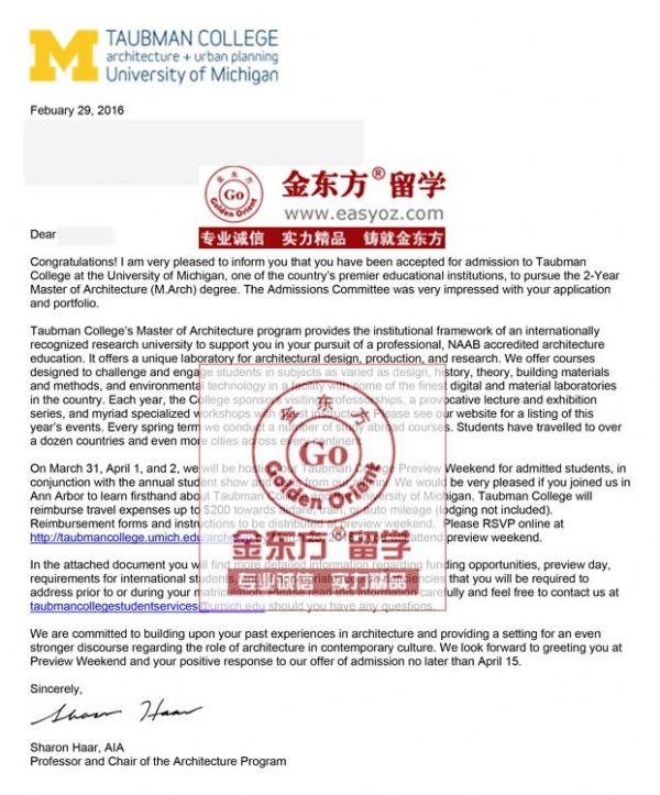录取结果:密歇根大学安娜堡分校建筑专业硕士