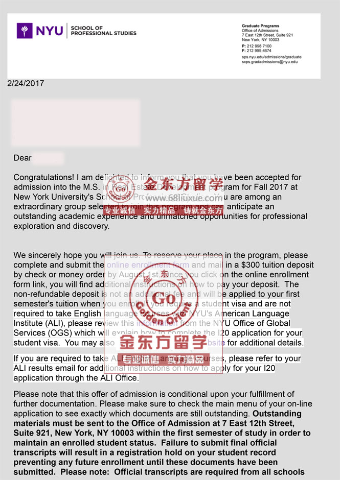 录取结果: NYU (纽约大学),M.S. in Real Estate Development program(房地产开发硕士)