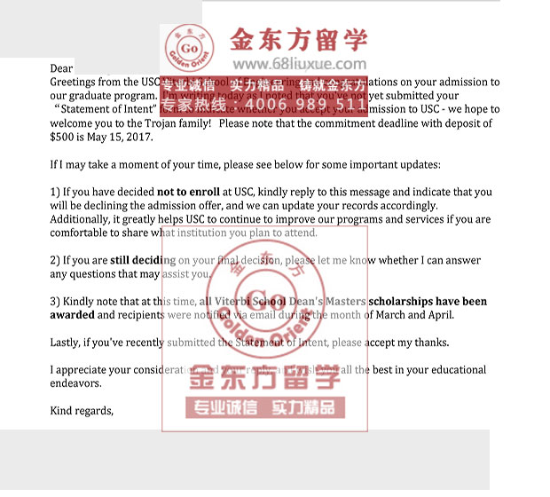 文书材料提交后不久,W同学最终收获自己心仪的南加州大学录取OFFER,当他得知自己被录取时觉得这一切付出都是值得的。