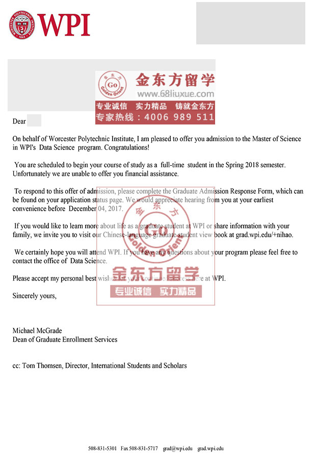 录取结果:Worcester Polytechnic Institute伍斯特理工学院,MS in Data Science数据科学硕士